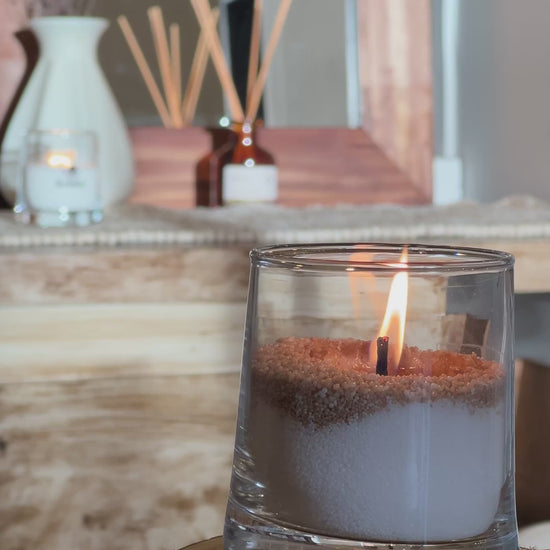 Esta cera no está diseñada para aromatizar intensamente, aunque puedes añadir unas gotas de esencia si lo deseas. Su verdadero encanto está en la intensidad de la llama, su textura perlada y su combustión limpia.
